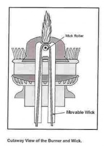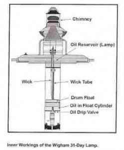 It was Wigham who came up with this simple yet extremely useful invention. Wigham came up with many types of oil lamps. He was constantly seeking a reliable brighter flame. Some of these were for different types of lamp oil, prior to paraffin (kerosene). He came up with the idea of concentric circular wicks. This example has four such circular wicks. He used similar ideas with his later gas lights, which became known as “crocus lights‟.