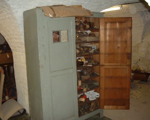 Wigham was constantly inventing. After he died, this cabinet was in his work-room. It is full of inventions in progress.